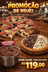 COMBO Pizza Grande Salgada + Pizza pequena Dois Amores + Mata borda